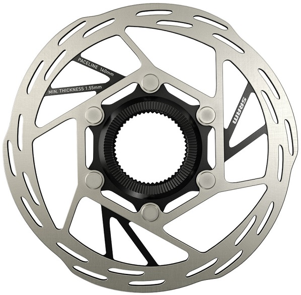 Brzdové kotúče Paceline dopĺňajú elegantný dizajn elektronických sád Sram ETap AXS a sú vybavené novou brzdovou plochou s otvormi pre výkonné, hladké a tiché brzdení.