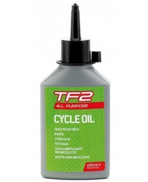 Mazací olej na reťaz TF2 Cycle v 125ml olejničke. Univerzálny hydro-uhlíkový minerálny olej TF2 v praktickom balení s kvapkadlom. Možno ho použiť na lanká, reťaze, ložiská, pedále, kde je jeho odolnosť voči tuhnutiu pri nízkej teplote značnou výhodou. Obsahuje inhibítory korózie, ktoré bránia oxidácii ošetreného povrchu a samozrejme znižuje vzájomné trenie dielov.