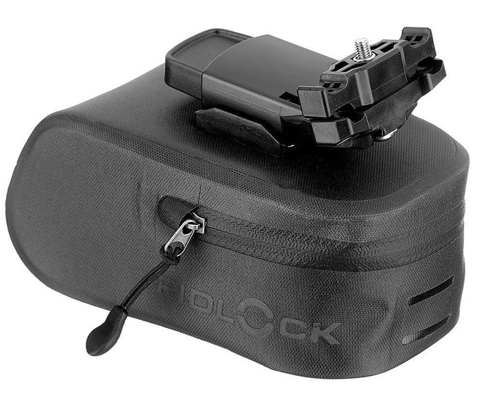 Univerzálna podsedadlová brašňa so systémom magnetického uchytenia umožňuje pomocou jedného dotyku brašňu odopnúť z držiaka umiestneného pod sedlom.