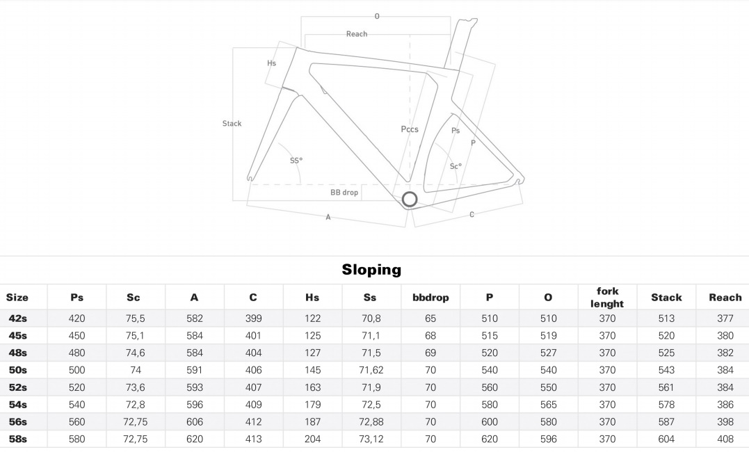 • sloping : 42s, 45s, 48s, 50s, 52s, 54s, 56s a 58s