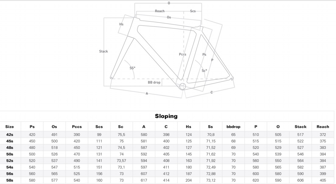 Dodávané veľkosti ( slopingová geometria S ) :