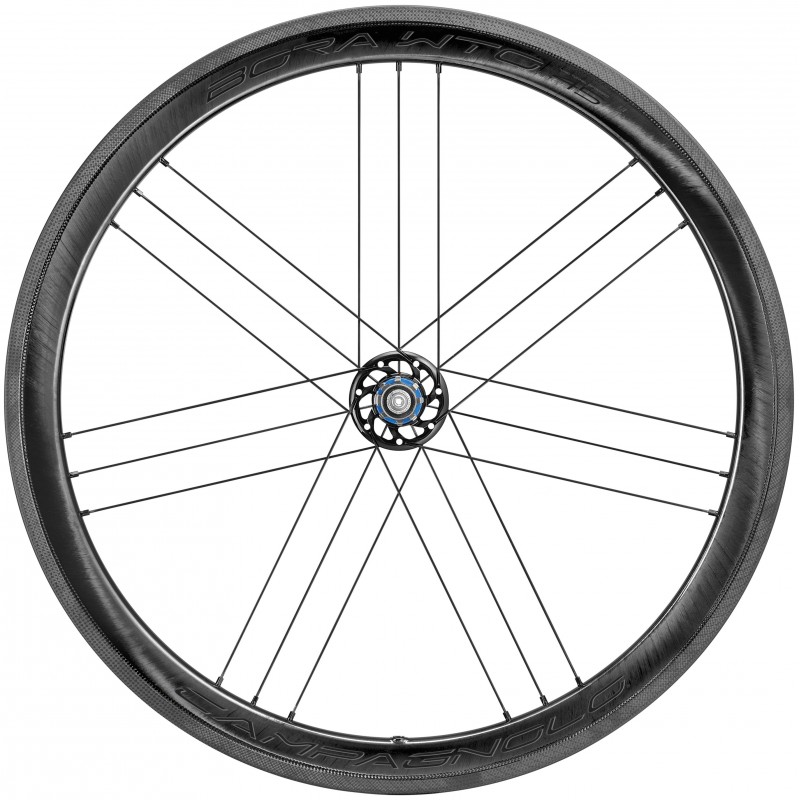 BORA WTO 45 2WF - zapletené kolesá určené pre ráfkové brzdy so skvelými aerodynamickými vlastnosťami (pomenovanie kolies WTO je akronym slov WIND TUNEL Optimized, ktorý vypovedá o prostredí, v ktorom inžinieri firmy Campagnolo tieto kolesá vyvíjali). Ďalší akronym 2WF (2 WAY FIT) poukazuje na to, že kolesá možno použiť ako so štandardnými, tak i bezdušovými plášťami a to bez akejkoľvek ďalšej úpravy.
