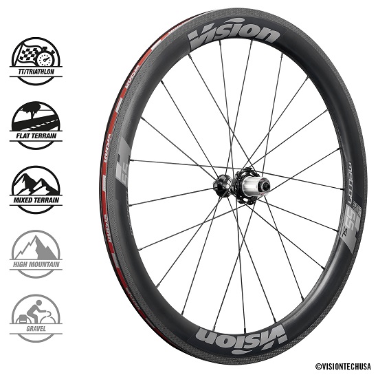 Základom kolies Vision Metron 55 SL Clincher sú 55mm vysoké aerodynamické plášťové ráfiky vyrobené z UD karbónu s vnútornou šírkou 17mm a špeciálnou úpravou brzdnej plochy, vďaka čomu sa výrazne zlepšili brzdné vlastnosti za sucha aj za mokra. Špecifický "U" profil ráfikov bol vyvinutý na základe rozsiahlych CFD analýz a testovaný vo veternom tuneli. Zaručuje výbornú ovladateľnosť a tuhosť kolies za akýchkoľvek podmienok, najmä však pri jazde v bočnom vetre.