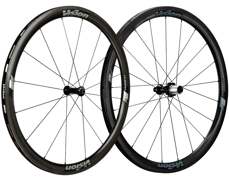 Základom kolies Vision TriMax Carbon 40 Tubular sú aerodynamické galuskové ráfiky vyrobené z UD karbónu s výškou 40mm a šírkou 24.8mm. Špecifický široký 'U' tvar ráfikov zaručuje výbornú ovladateľnosť a tuhosť kolies za akýchkoľvek podmienok, najmä však pri jazde v bočnom vetre. Tento profil bol vyvinutý na základe rozsiahlych CFD analýz a testovaný vo veternom tuneli.